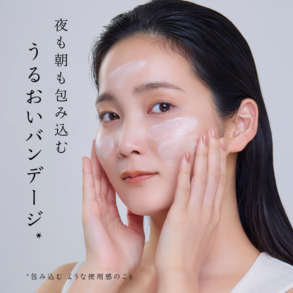 ぴったりと肌を覆うように包み込み、うるおいを送り込む。日本初処方の「フィトグリセリンバーム」*を配合し、こっくりと吸いつくようなうるおい膜とベタつかないなめらかさをかなえたクリーム。能登の素材で作った独自エキス*をはじめ、ナイアシンアミド*やガラクトミセス培養液*、CICA由来PDRN*、ブドウポリフェノール*などのエイジングケア*に適した成分を凝縮。夜使えば一晩中肌をケアし、朝使えば日中の肌のうるおいを守り抜きます。