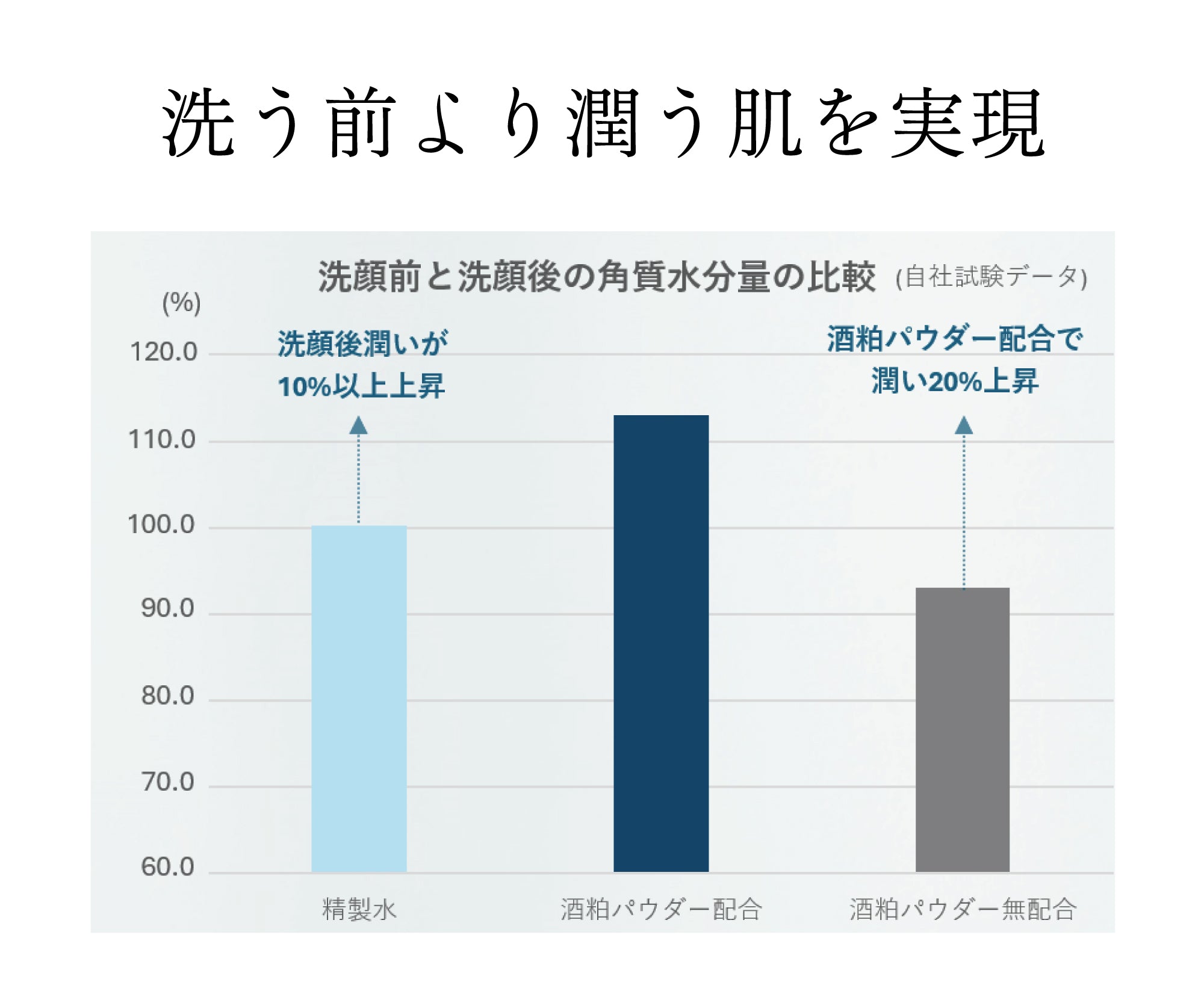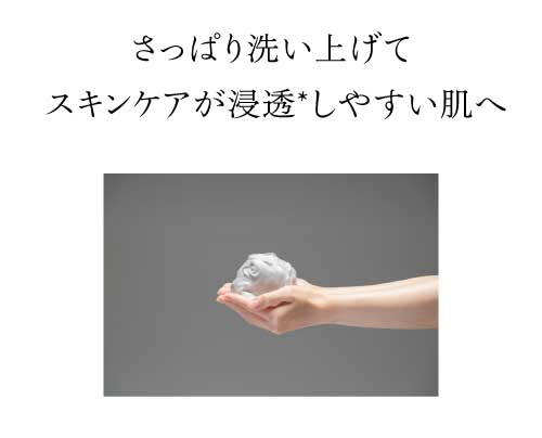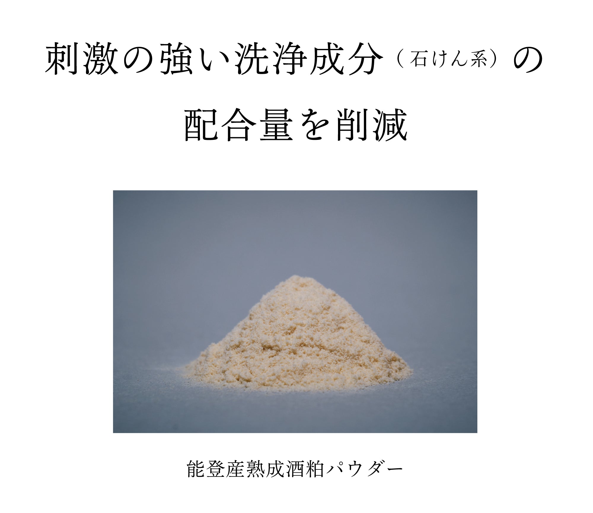 能登産熟成酒粕パウダー*が泡立ちと弾力を高め、肌にやさしい洗い心地に。石けん成分を抑えたやさしい処方。